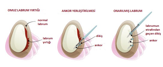 Bankart tamiri, açık ya da kapalı yani artroskopik olarak yapılabilir. Glenoid kenarından sıyrılmış olan ön taraftaki labrumun yerine dikilmesine denir. Bu işlem genellikle ankor denilen çapaların glenoid kenarına yerleştirilmesi ve bu çapalardan çıkan iplerle labrumun yerine dikilmesi ile yapılır. Bu işlemin omuz artroskopisi ile kapalı olarak yapılması sonrasında oldukça başarılı sonuçlar elde edilmektedir.