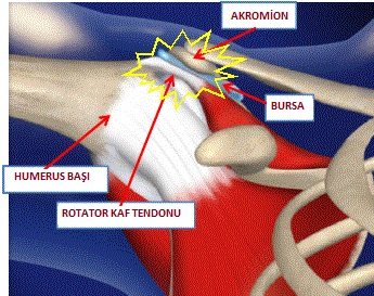 Akromion altında humerusun üzerinde sürtünme ile olan hareketler omuzda rahatsızlıkların önemli sebeplerindendir. Sıkışma supraspinatus üzerinde yoğunlaşır. Sıkışma ( impingement ) ile oluşan lezyonlar 3 evrede incelenir.